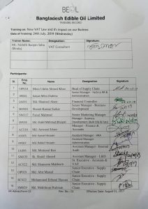 নতুন মুল্য সংযোজন কর ্ও সম্পূরক শুল্ক আইন ২০১২ প্রেক্ষাপটে BANGLADESH EDIBLE OIL LIMITED প্রশিক্ষণ কমসূচি।TRAINER MR.NISHITH RANJAN SAHA BINDU.